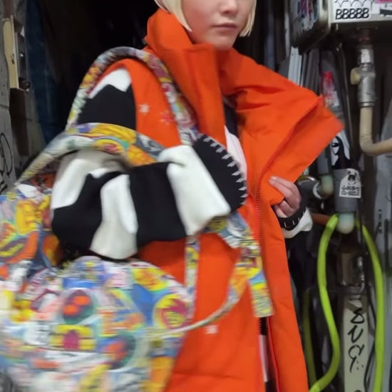 TENDER PERSONの得意とするダウンアイテムから新作のオレンジカラーが映えるダウンベスト。